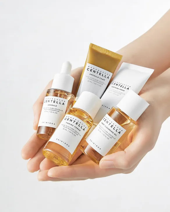 Set compatto da viaggio con 5 mini prodotti per una routine completa viso dalla detersione all’idratazione, tutti a base di Centella Asiatica, ideale per lenire, idratare e proteggere la pelle durante spostamenti o weekend fuori casa. Include: cleansing oil, ampoule foam, toning toner, centella ampoule e soothing cream. Perfetto per chi vuole testare i bestseller del brand o portare la skincare ovunque.